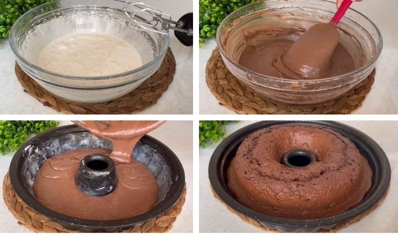 **Prvi korak:** U velikoj zdjeli pomiješajte jaja i šećer. Koristeći mikser, tucite smjesu na visokoj brzini dok ne postane pjenasta i lagana. Ovaj korak je ključan za postizanje sočne teksture kolača. Kada se jaja i šećer dobro sjedine, dodajte mlijeko i ulje, i dobro izmiksajte dok se svi sastojci ne povežu.
