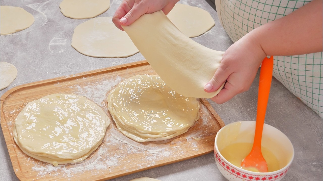 Dok se testo odmara, omekšajte puter i pomešajte ga sa uljem. Svaku kuglu testa oblikujte u krug prečnika oko 10 do 12 centimetara. Na pleh prekriven brašnom, postavite prvi krug testa, a zatim uzmite sledeći krug i stavite ga pored. Na svaki krug nanesite obilan sloj rastopljenog putera. Ova kombinacija putera i ulja doprinosi savršenoj hrskavosti i bogatstvu okusa pite. Ovo je trenutak kada možete dodati i razne začine poput origana ili majčine dušice za dodatni ukus.