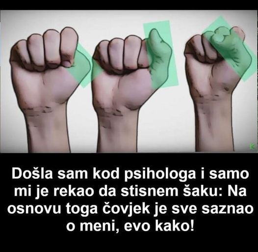 Kad asam odlučila posjetiti psihologa po prvi put ostala sam iznenađena kada mi je zatražio da stisnem pesnicu. Samim tim smo odlučili danas pisati o tri tipična oblika stiska pesnice i šta oi mogu reći o vašoj ličnosti.