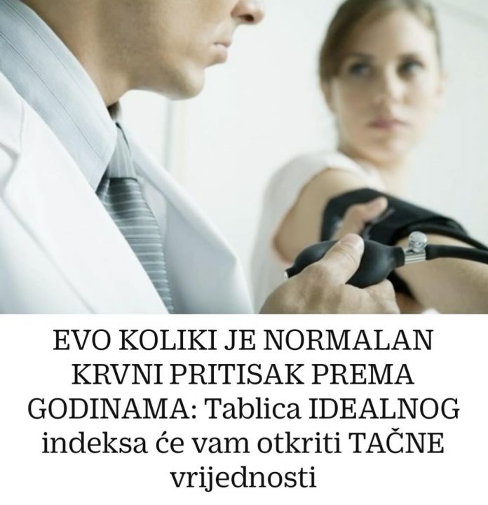 Danas ćemo pisati o krvnom pritisku i o tome koliki je normalan pritisak prema godinama. Ispred vas je tablica koja pokazuje koji je pritisak idealan.