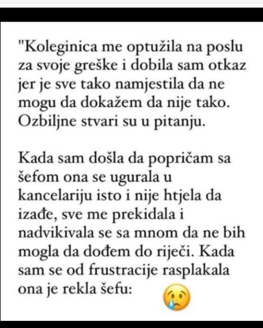 U današnjem svijetu, radno okruženje često se doživljava kao mjesto profesionalnog rasta i saradnje. Međutim, ponekad se to okruženje može pretvoriti u pravi pakao, ispunjen manipulacijama, nepravednim optužbama i emocionalnim ranama koje ostavljaju dugoročne posljedice. Ova priča o jednoj ženi koja je doživjela izdaju od strane kolegice savršeno ilustrira koliko može biti mračno radno mjesto. Nažalost, mnogi ljudi se suoče s ovakvim situacijama, a posljedice su često dalekosežne, kako na emocionalno, tako i na profesionalno zdravlje.