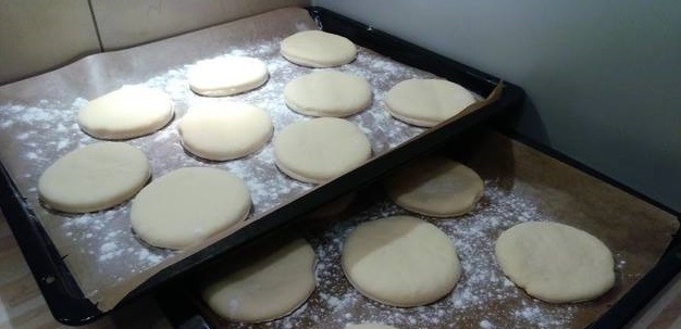 Nakon što ste dobili tijesto, pospite radnu površinu s malo brašna i prebacite tijesto na nju. Kratko ga premijesite, dodajte još malo brašna ako je potrebno, i razvaljajte ga na debljinu od 1 cm. Ovaj korak je važan za dobivanje pravih krafni jer debljina tijesta direktno utiče na njihov oblik i teksturu. Ako je tijesto predebeo, krafne neće imati savršen oblik prilikom prženja.